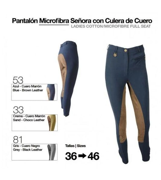 BREECHES PANTALÓN MICROFIBRA PARA MUJER CON CULERA DE CUERO