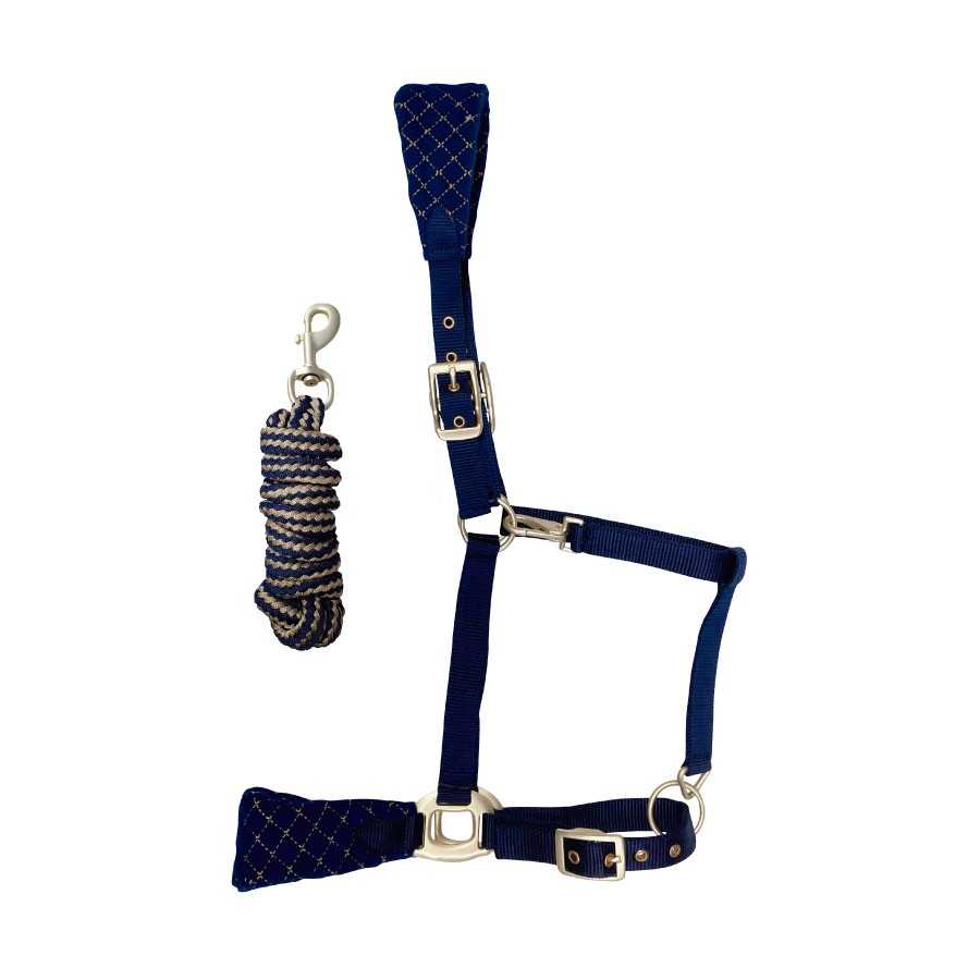 - cabresto a juego de 2 metros con trenzado que combina azul y dorado