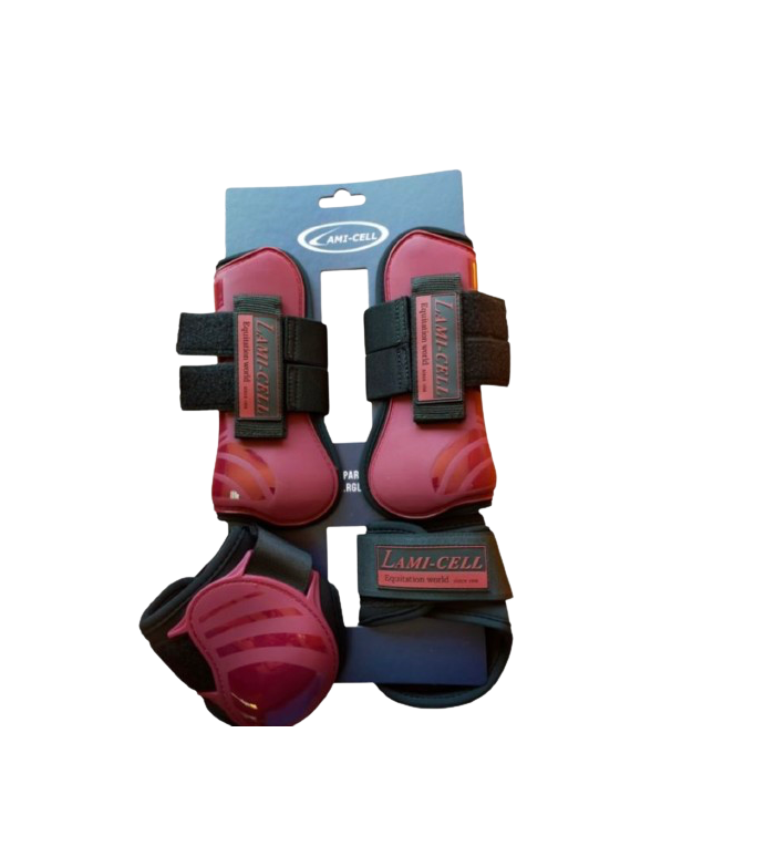 Conjunto De Protectores Para Caballo Pro Zaldi, conjunto de protectores 49925941F para caballo, juego completo de 4 protectores, dos para patas delanteras, y dos para patas traseras del caballo. Con cierres de velcro para asegurar un ajuste perfecto a las extremidades del caballo. Protector Lami-Cell Pro-Zaldi de salto para Caballo. La capa externa es fuerte y dura, combinada con un interior de neopreno acolchado para absorber los impactos. Colores: rojo, marrón, amarillo, verde, granate, fucsia, negro, y blanco. Disponible también