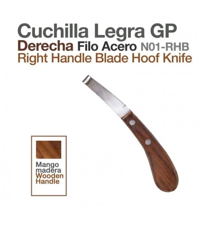 Cuchilla Legra Derecha de Acero modelo N01-Rhb, con mango de madera. Hoja ancha recta insertada en el borde del mango. Permite múltiples afilados. Modelo con filo a la Derecha. Excelente relación calidad-precio Zaldi.