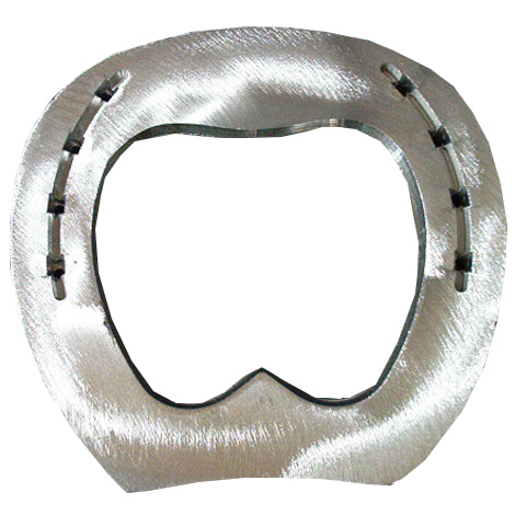 Herradura de aluminio de aplomo natural con barra en la parte inferior, tambien llamada boca de cántaro. Indicada para caballos con problemas de navicular