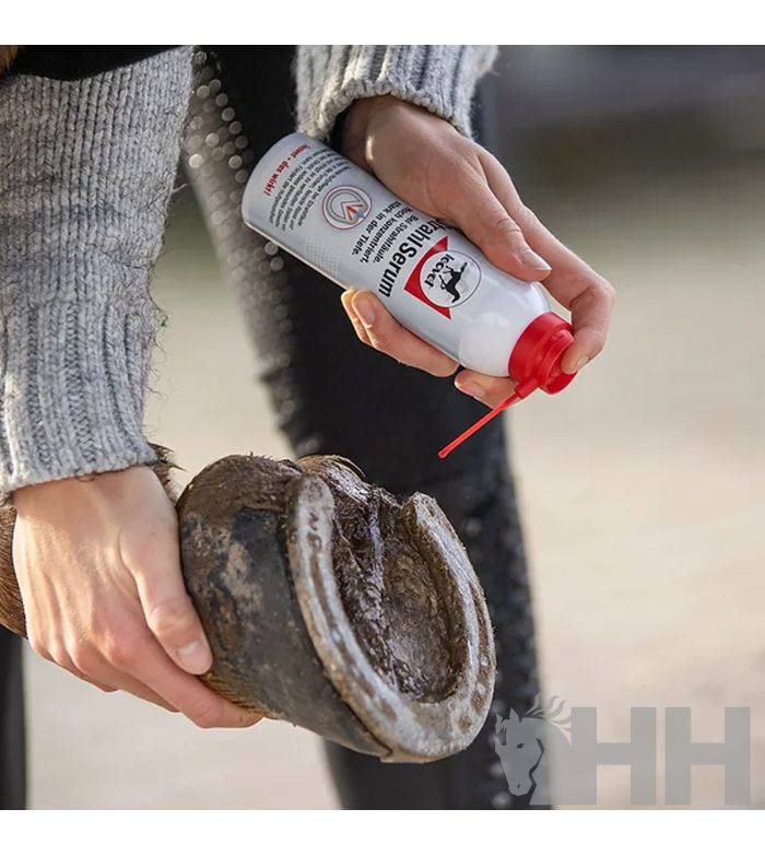 Para su uso específico en casos agudos, se desliza entre los surcos y grietas finas del casco, penetrando en la materia podrida, desplazando la humedad y deteniendo el proceso de descomposición. Seca la ranilla, permitiendo que el tejido sano se regenere y favorece que el casco sane. 200ml