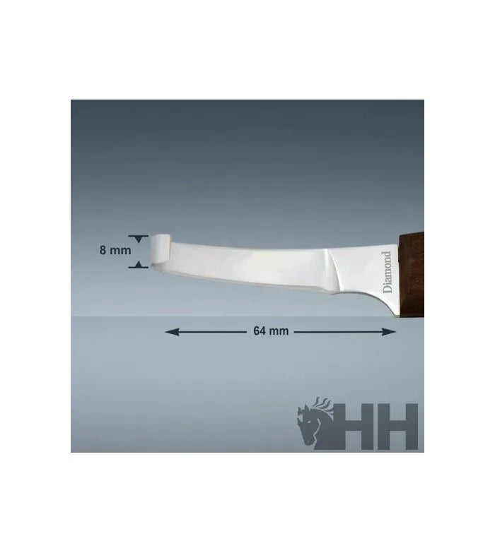 Legra Diamond Hoja Plana Estrecha, elimina el exceso de suela y recorta la ranilla. La cuchilla de acero inoxidable mantiene el borde afilado para cortes rápidos y limpios. Mango ergonómico de madera para facilitar el agarre. Hoja estrecha para mejor acceso al corte en la ranilla.