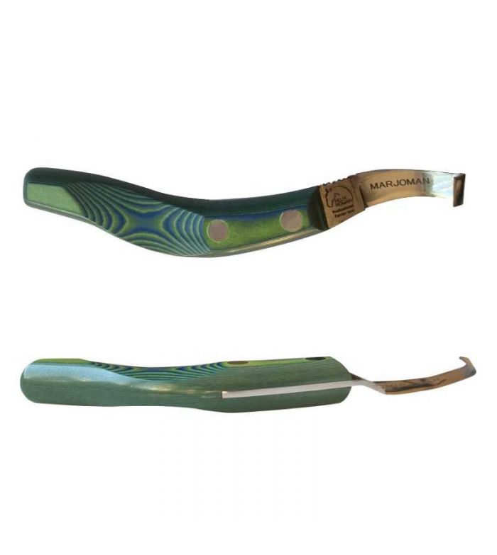 Legra Marjomán de Félix Román, legra de cuchilla fija fabricada por Félix Román especialmente para Marjomán. Mango en color verde y nombre de Marjomán grabado en el filo. El mango es largo y ergonómico para un mejor agarre y manejo. Con muescas en el filo para evitar el deslizamiento. Félix Román es herrador de caballos profesional con 25 años de experiencia. Sus productos ofrecen una calidad máxima a un precio accesible.