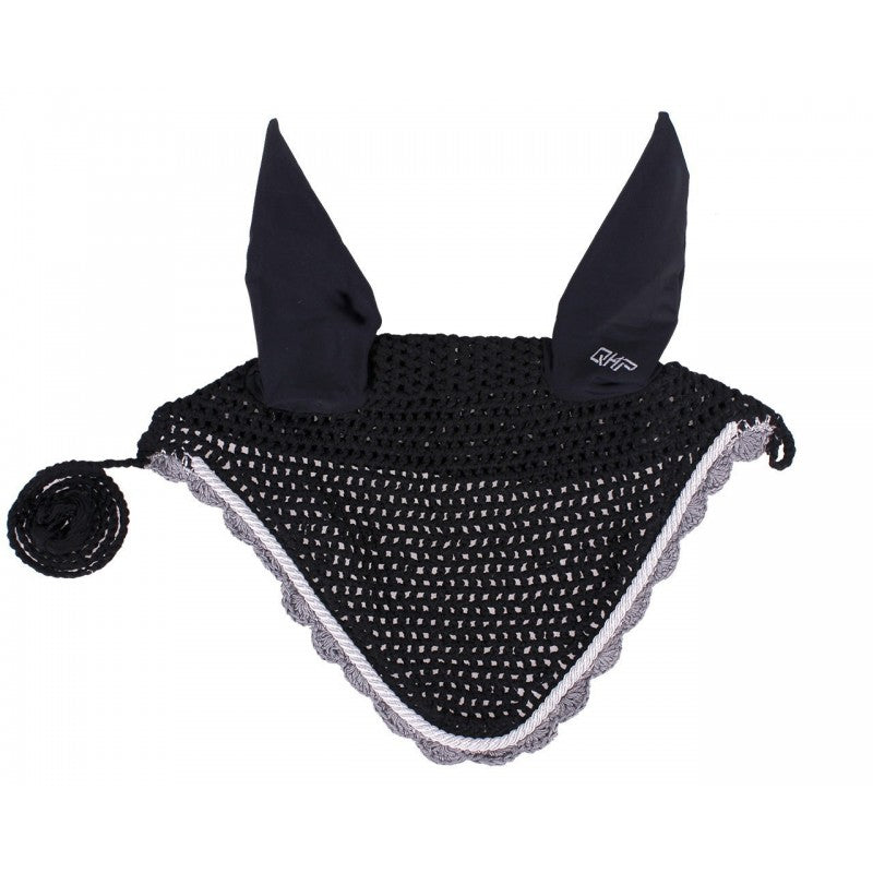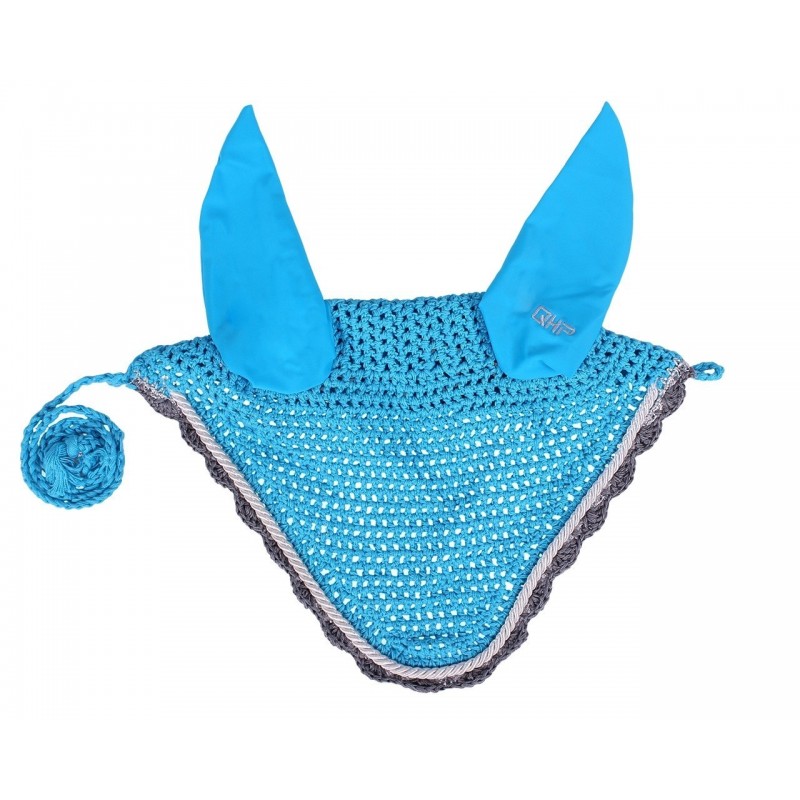 Orejeras de ganchillo realzadas con un cordón en color plata y gris.