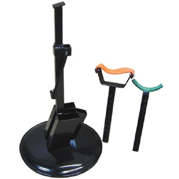 Trepié para sujetar las extremidades del caballo de base circular, ajustable en altura, compartimentos para herramientas y 3 cabezales intercambiables según la actividad.