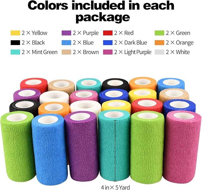 - El paquete incluye: este juego de vendajes incluye 4 vendajes autoadhesivos, su tamaño es de 4 x 5 yardas, son perfectos para niños juguetones y mascotas encantadoras.